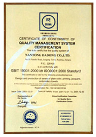 南通大东有限公司 ISO9001认证证书