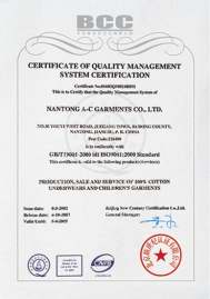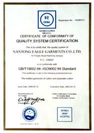 南通英青服装有限公司 ISO9001认证证书