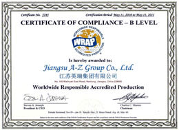 江苏英瑞集团有限公司 WRAP认证证书